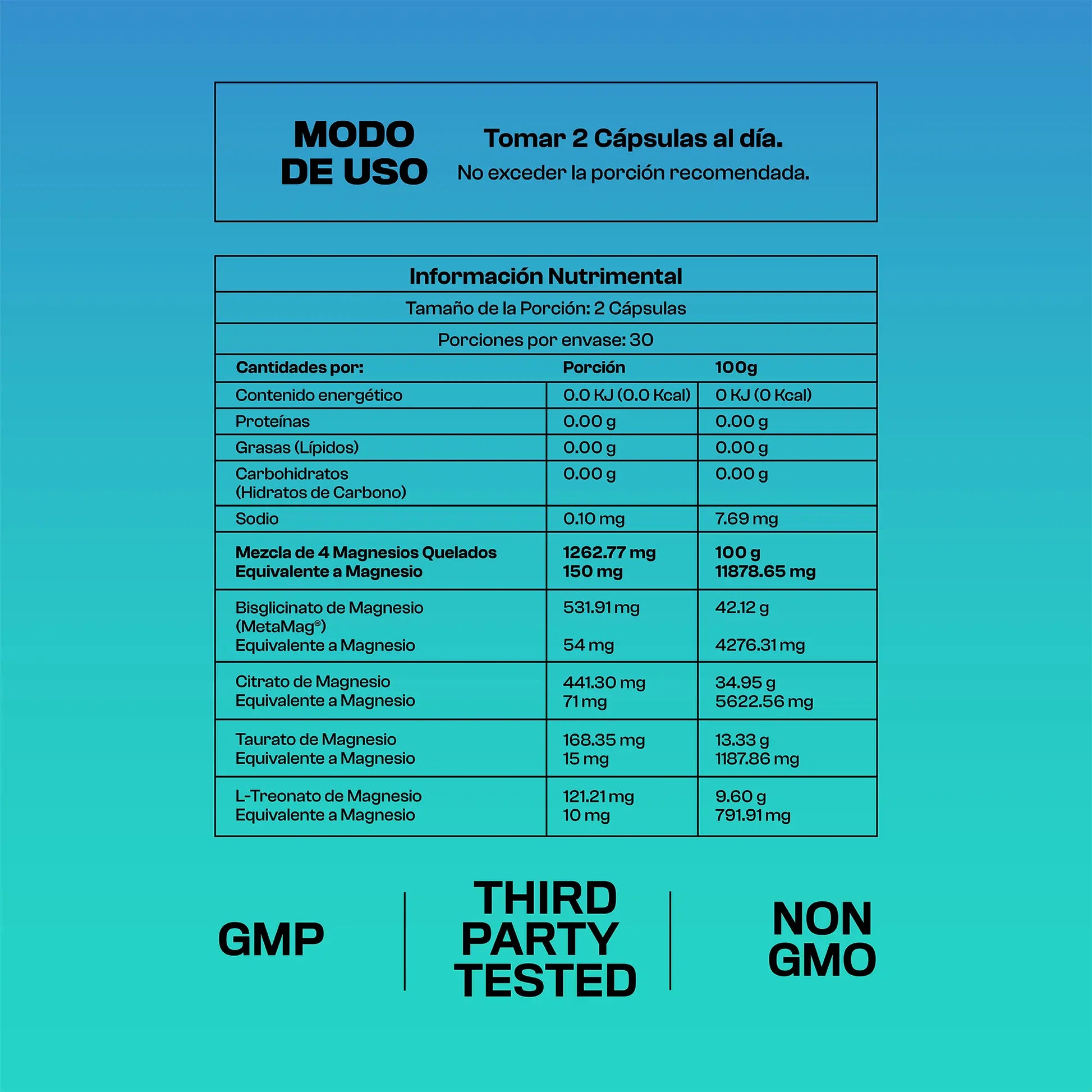 No. Usamos formas queladas de magnesio (bisglicinato, taurato, treonato) que tienen absorción superior y prácticamente cero efectos digestivos. El citrato está en dosis moderadas. A diferencia del óxido de magnesio barato que causa diarrea y se absorbe mal, nuestras formas llegan a las células sin molestar tu estómago.